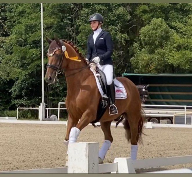 2023 haben wir Bruno in den verdienten Ruhestand gesendet. Er war Chantal immer ein sehr guter Lehrmeister und auch wenn er keinen Leistungssport mehr betreibt, darf er jetzt hin und wieder jungen Reitern mal das Gefühl vom großen Sport geben.